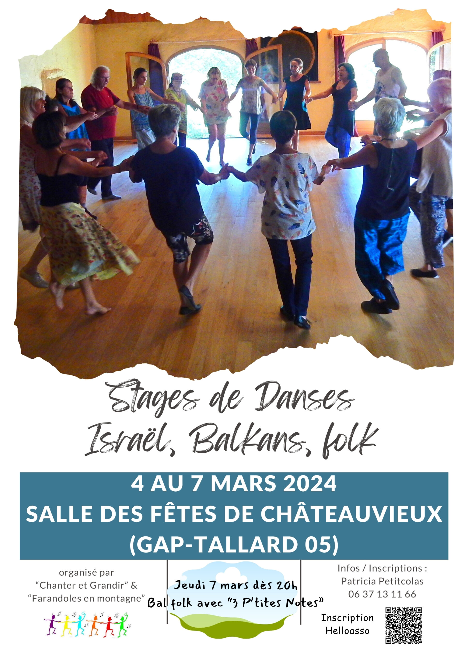 Danses des Balkans : Roumanie, Bulgarie, Serbie, Grèce, Crète, Macédoine, Albanie, Arménie… Danses d’Israël Danses de bals folks Le programme (répertoires, niveau…) sera affiné au fur et à mesure des inscriptions.