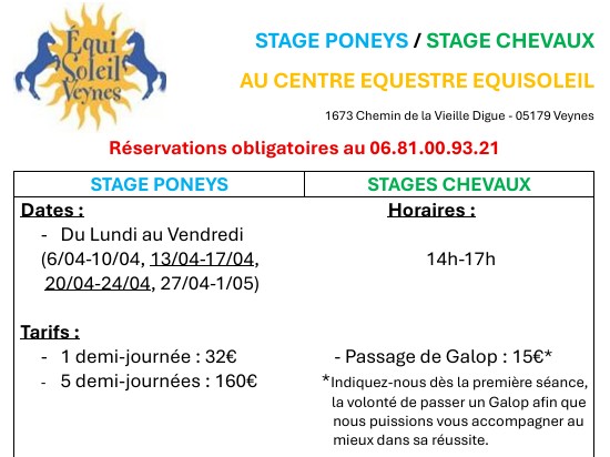 Adresse : Centre de Tourisme Equestre – EquiSoleil, 1673 Chemin de la Vieille Digue 05400 Veynes