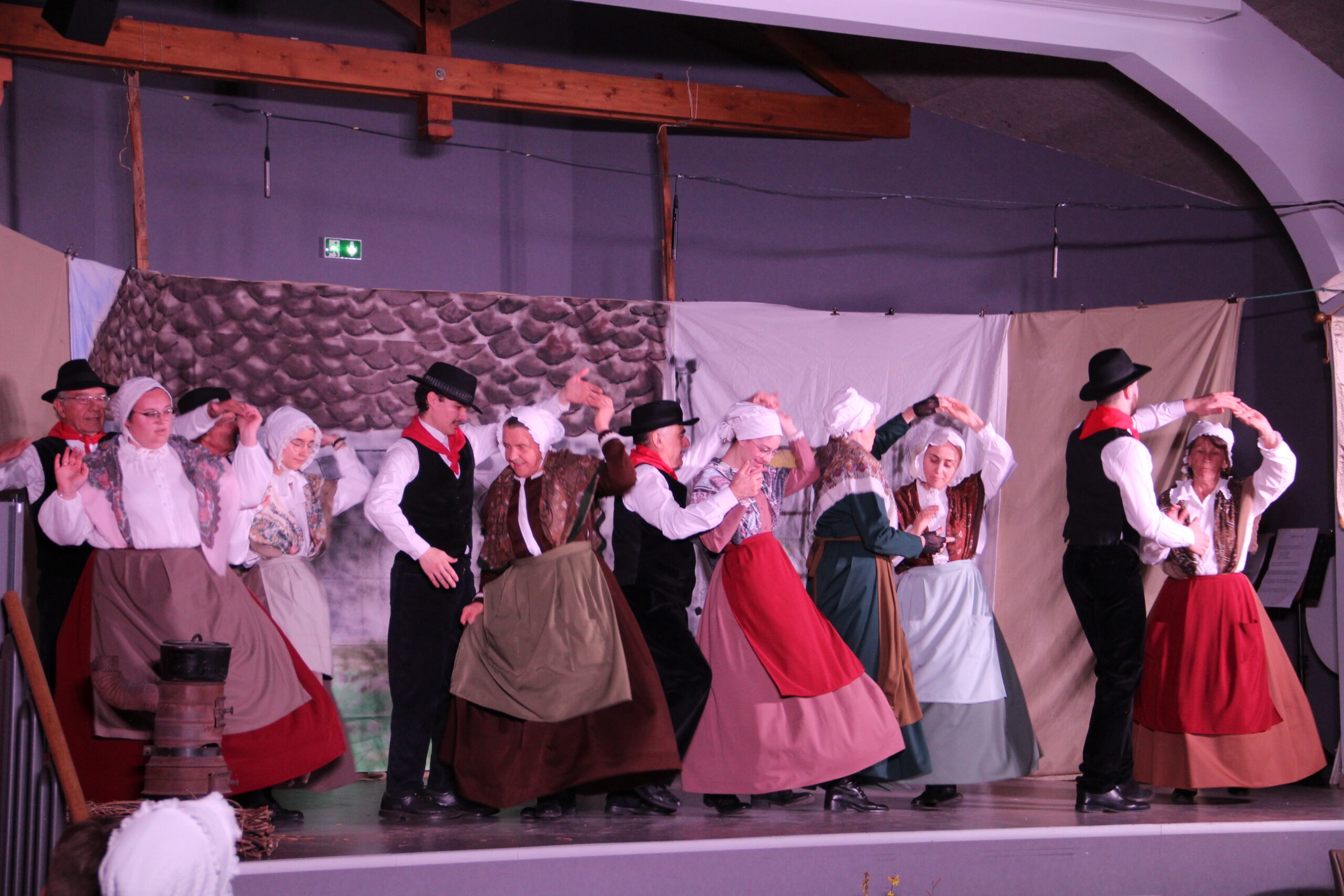 Chants et danses du Dauphiné en costumes traditionnels et saynètes humoristiques sur la vie d’antan dans nos vallées en patois champsaurin et en français.