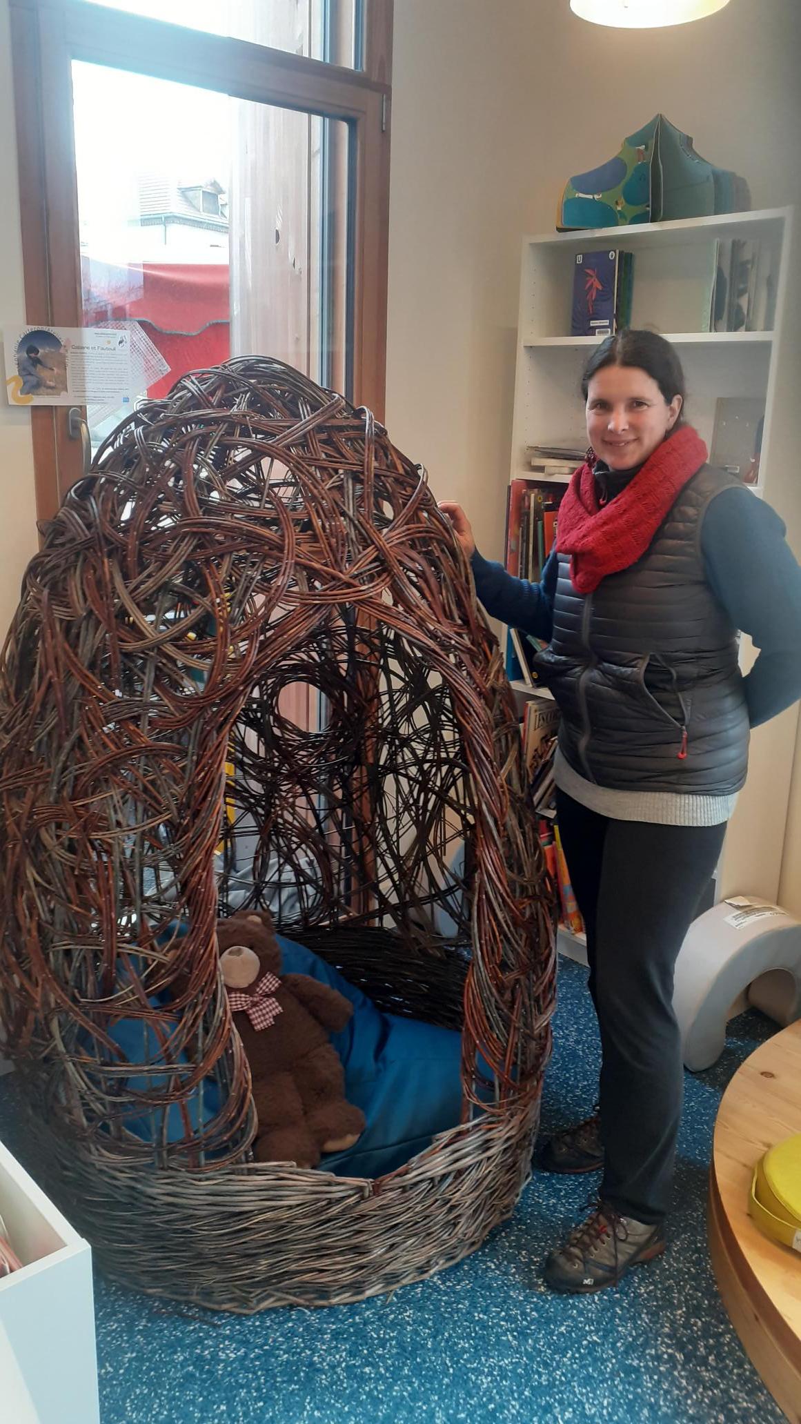 Vernissage lundi 8 décembre à 10h30 : rencontre avec Stéphanie Carteron, artisane vannière autour de ses oeuvres et du verre de l’amitié. “Artisane Vannière, j’exerce la vannerie d’art comme un lien, une expression, un partage avec le monde qui nous entoure. Les notions de durable et de respect du vivant sont au cœur de mon métier et de ma démarche : autant dans la culture de l’osier que dans l’art de la vannerie. Marier des végétaux, les tresser fait partie des plus vieux savoir faire de l’humanité, j’aime à penser être un maillon de la chaine de transmission de ces savoirs et de cette sensibilité. L’art comme la manière de sublimer l’instant présent à travers des sculptures ou autres réalisations mais aussi à travers les objets du quotidien. Un retour au sens premier de l’artisanat : personne qui met son art au service d’autrui. A l’heure où tout va si vite, l’osier, la vannerie nous replace dans un autre rapport au temps et à notre environnement.”