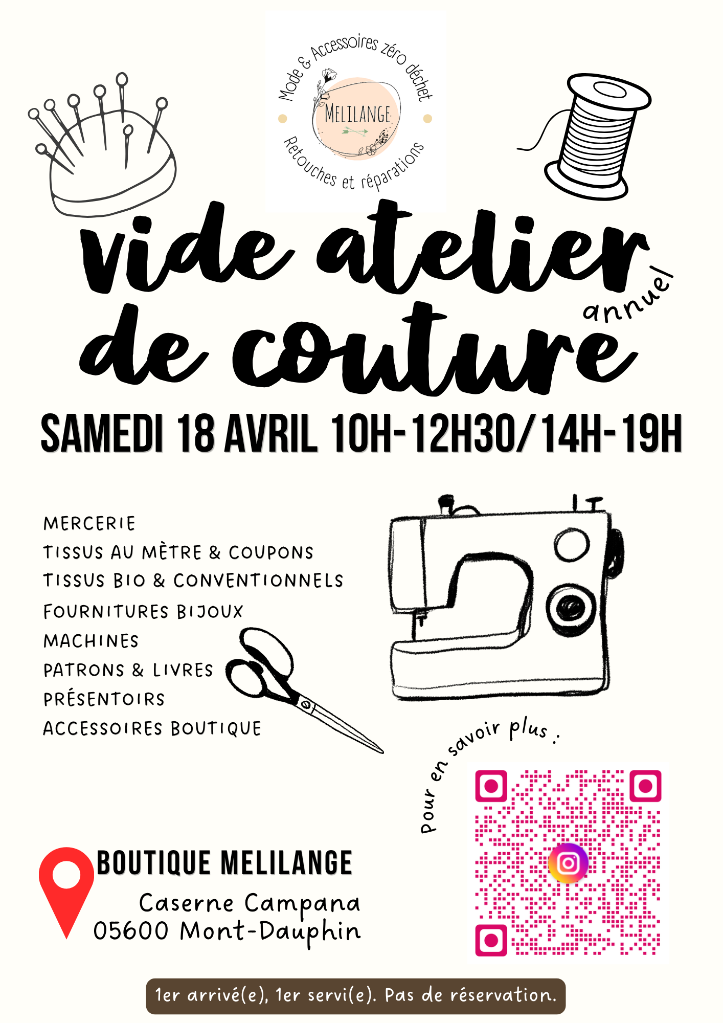 Besoin de remplir tes placards de nouveaux tissus, coupons, machines ou autres patrons ? Au vide atelier de couture de Mélilange, c'est le moment de l'année pour refaire le plein… et même te trouver de nouvelles idées !