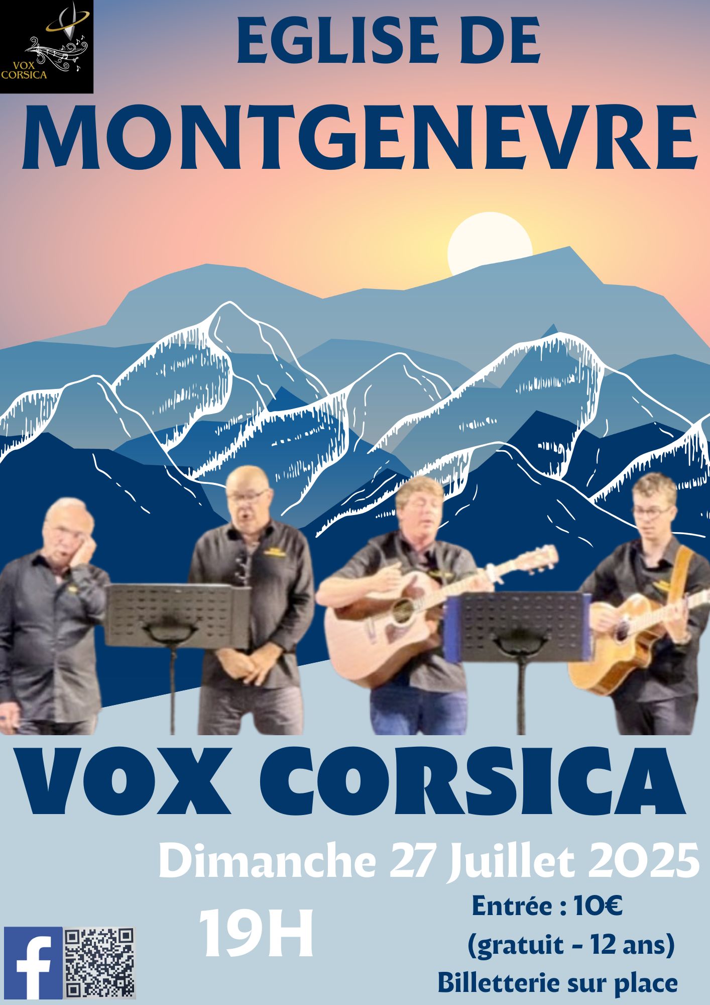 Voyage au cœur de l’âme corse. Portée par la richesse d’une culture insulaire fière et enracinée, la polyphonie corse est bien plus qu’un chant : c’est une prière, une mémoire, une émotion partagée. A travers des voix qui s’enlacent avec puissance et délicatesse, le concert de VOX CORSICA, empreint de recueillement et de partage, vous invite à plonger au cœur de l’identité corse et découvrir cet art vocal séculaire, cette culture vivante et vibrante transmise au fil des générations. Les chants sacrés et profanes, mêlant ferveur spirituelle et récits de la vie, résonnent dans un dialogue intime entre l’homme et sa terre corse, entre le passé et le présent, célébrant ainsi la beauté des montagnes, la mémoire des anciens, la vie des bergers corses et les évènements de la vie quotidienne. Ainsi, le chant polyphonique est marqué principalement par 3 hommes (3 voix) qui se répondent à capella : U BASSU ( la voix la plus grave qui représente la force), A SECONDA (chanteur principal qui entonne le chant et qui représente la sagesse) et A TERZA ( la voix la plus haute qui amène la beauté et qui termine l’accord). Laissez-vous transporter par ces harmonies touchantes, vibrantes et poignantes, où chaque voix du groupe Vox Corsica trouve sa place dans un équilibre subtil, racé, entre force brute et fragilité intense. Une expérience authentique, hors du temps, un voyage insulaire entre tradition et modernité. Seront présents ce dimanche 27 juillet : Patrice TAFANELLI, Marc TAFANELLI, Guillaume TRAMONI, Paul Marie VALLE, Mio COUTHIER-TAFANE