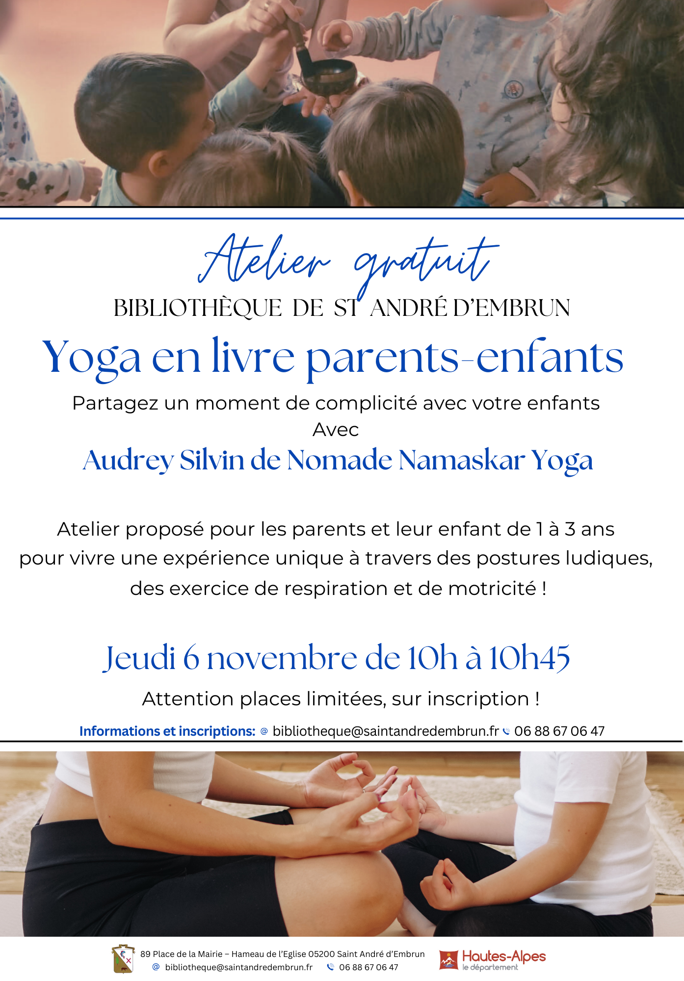 Atelier proposé pour les parents et leur enfant de 1 à 3 ans pour vivre une expérience unique à travers des postures ludiques, des exercice de respiration et de motricité ! Attention places limitées, sur inscription !